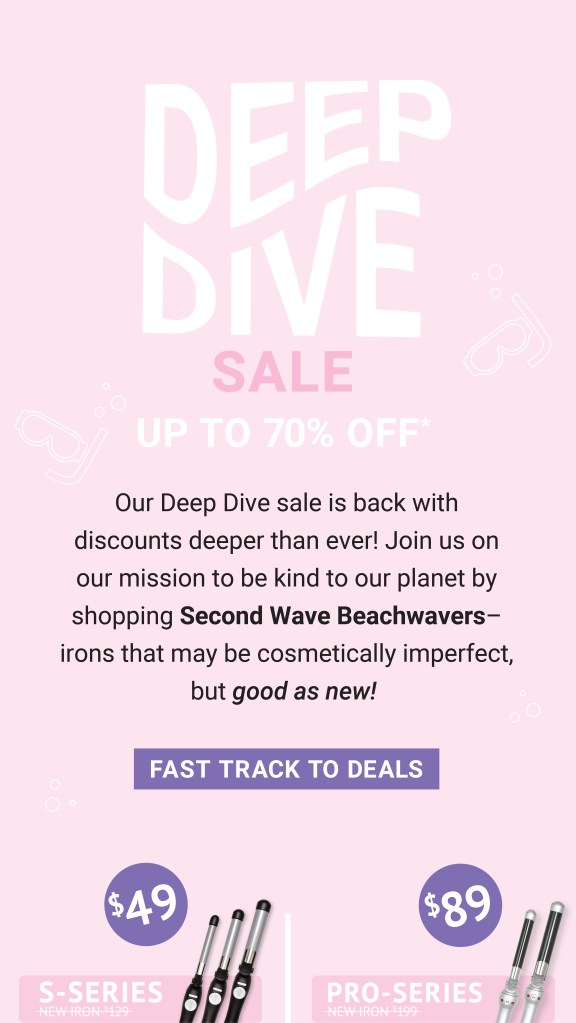 Just click here to go right to the sale page. All of the styling tools are certified open boxes! So what does that mean? When a Beachwaver iron is returned, we open each box and hand-inspect each tool. These irons may be cosmetically imperfect, but are certified good as new!